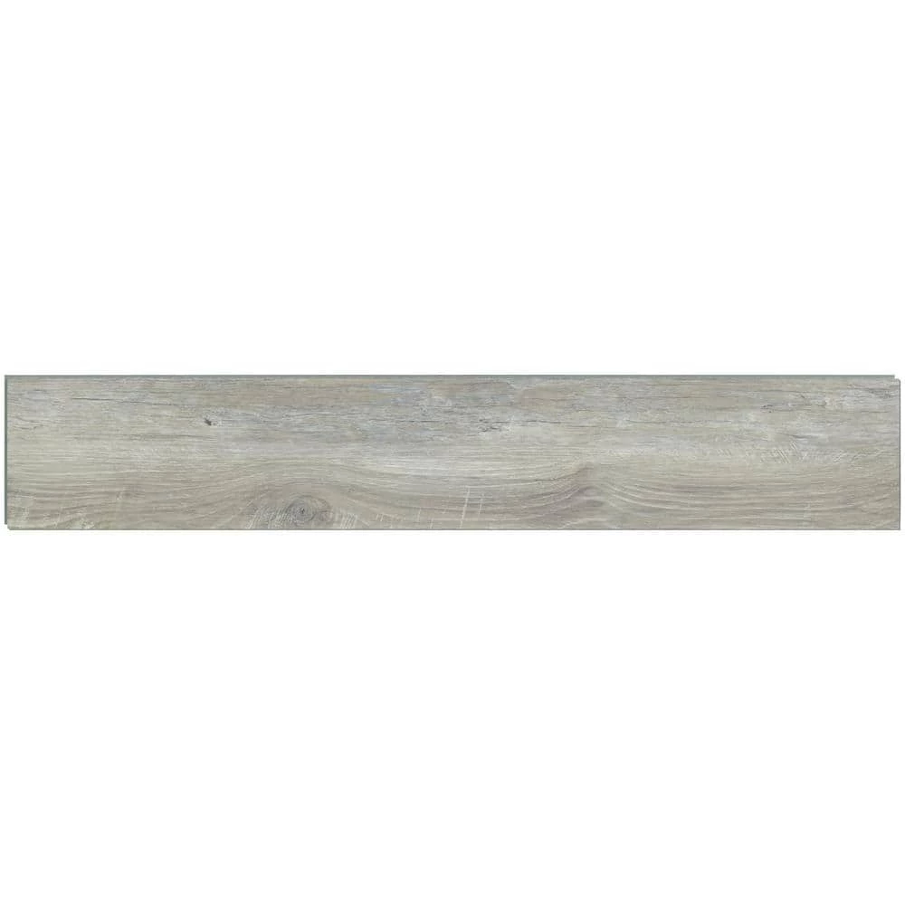 Enhance your interior design with this 6 in. x 36 in. Winding Brook vinyl tile flooring. Pairing with a variety of decorating schemes, this elegant flooring offers the authentic appearance of wood floors. This low-maintenance vinyl plank features a sophisticated grey and brown tones that have light knots and graining for a real wood look. It measures 4.4 mm thick and is waterproof, scratch-resistant, stain-resistant and dent-resistant. This flooring is easy to install with its uni-click locking system making it DIY-friendly and it gives supreme comfort when under foot. Install in any level of your home over concrete, cork, tile or wood. Coordinating vinyl flooring trim pieces including end caps, stair noses, reducers and T-moldings are available to give your residential indoor flooring project a professional, seamless finish.